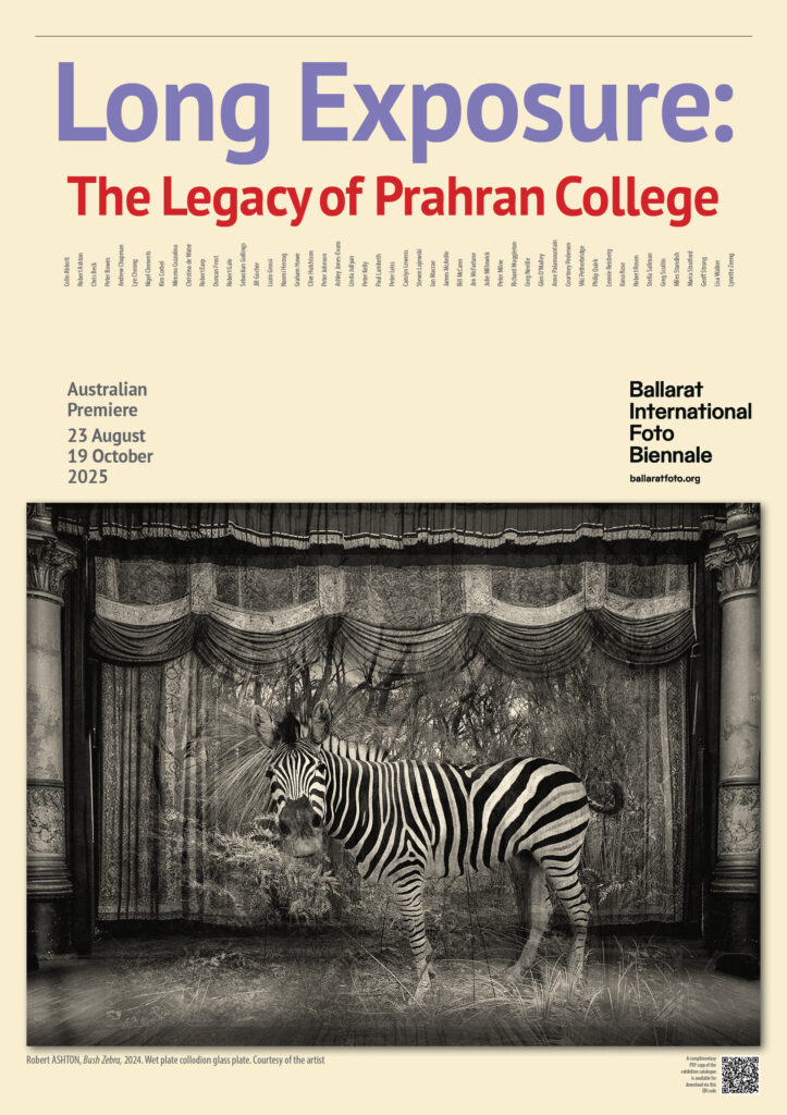 This year our Curatorial Team instigated 3 exhibitions: The Museum of Australian Photography (MAPh) curated The Basement : Photography from Prahran College (1968 – 1981) 1 March – 25 May 2025. This exhibition focussed on the 1970s. I then curated two further exhibitions for the Team – The Prahran Legacy: Beyond the Basement at Magnet Galleries, Docklands, 4 – 15 May 2025, then Long Exposure: The Legacy of Prahran, 23 August – 19 October, a core exhibition of Ballarat International Foto Biennale, 23 August – 19 October 2025. These two exhibitions included the 1980s students of Prahran College and focussed on their more recent work.